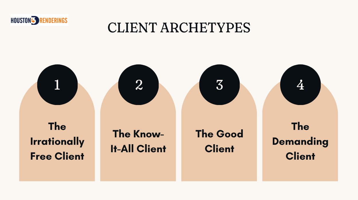 Almost every architect encounters these four types of clients and 3D visualization becomes the tool to keep things on track and keep projects swift.