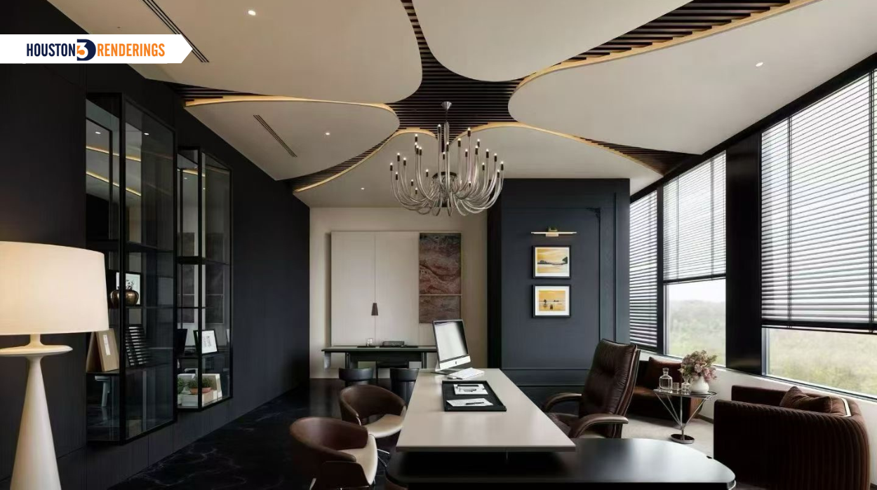 Example: For a luxury home office project, interior renderings allow clients to “walk through” rooms and feel the energy and elegance, making final design approvals faster and more confident.