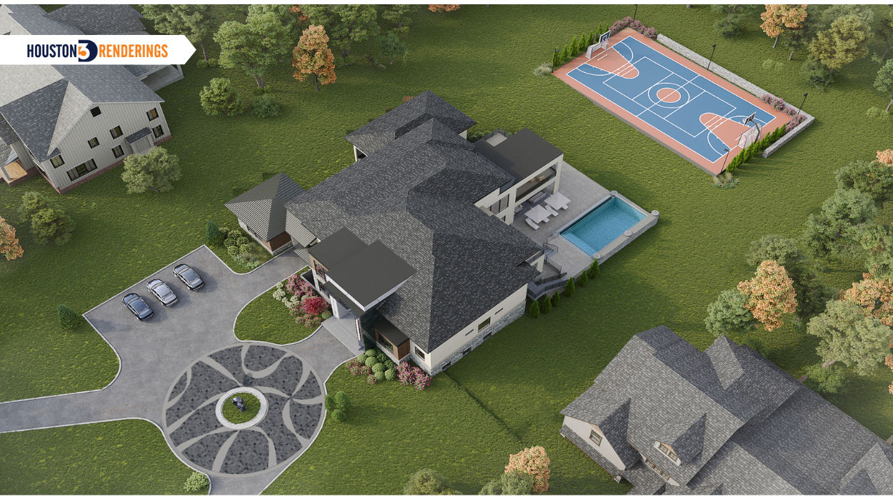 Aerial renderings provide a top-down perspective, showing the property in relation to its surroundings. They are invaluable for developers and planners who need to understand scale, site layout, and integration with the environment.