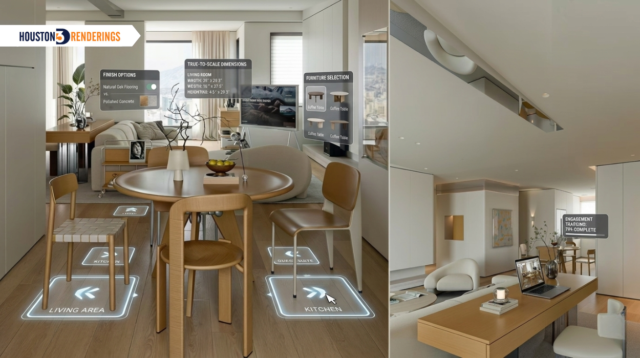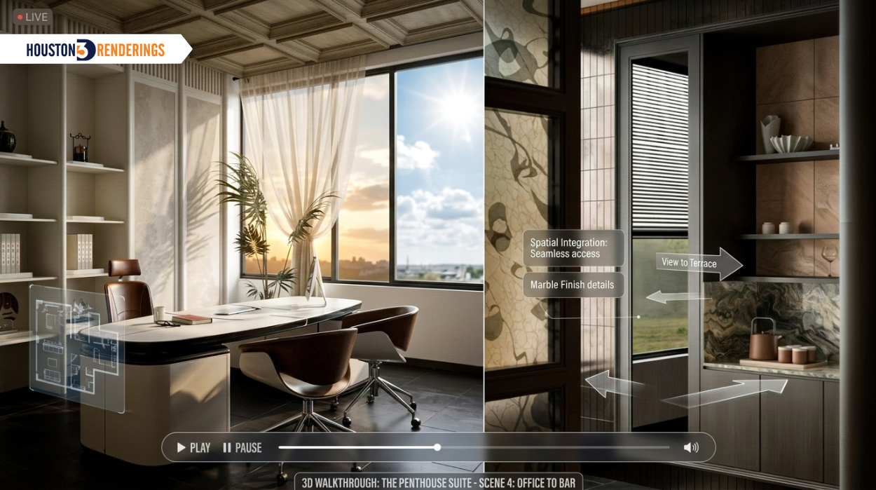 At Houston 3D Renderings, we help architects and homebuilders turn plans into vivid, convincing experiences. Whether you need exterior, interior, aerial, animated, or interactive tours, our visualizations make every decision easier, faster, and more confident.