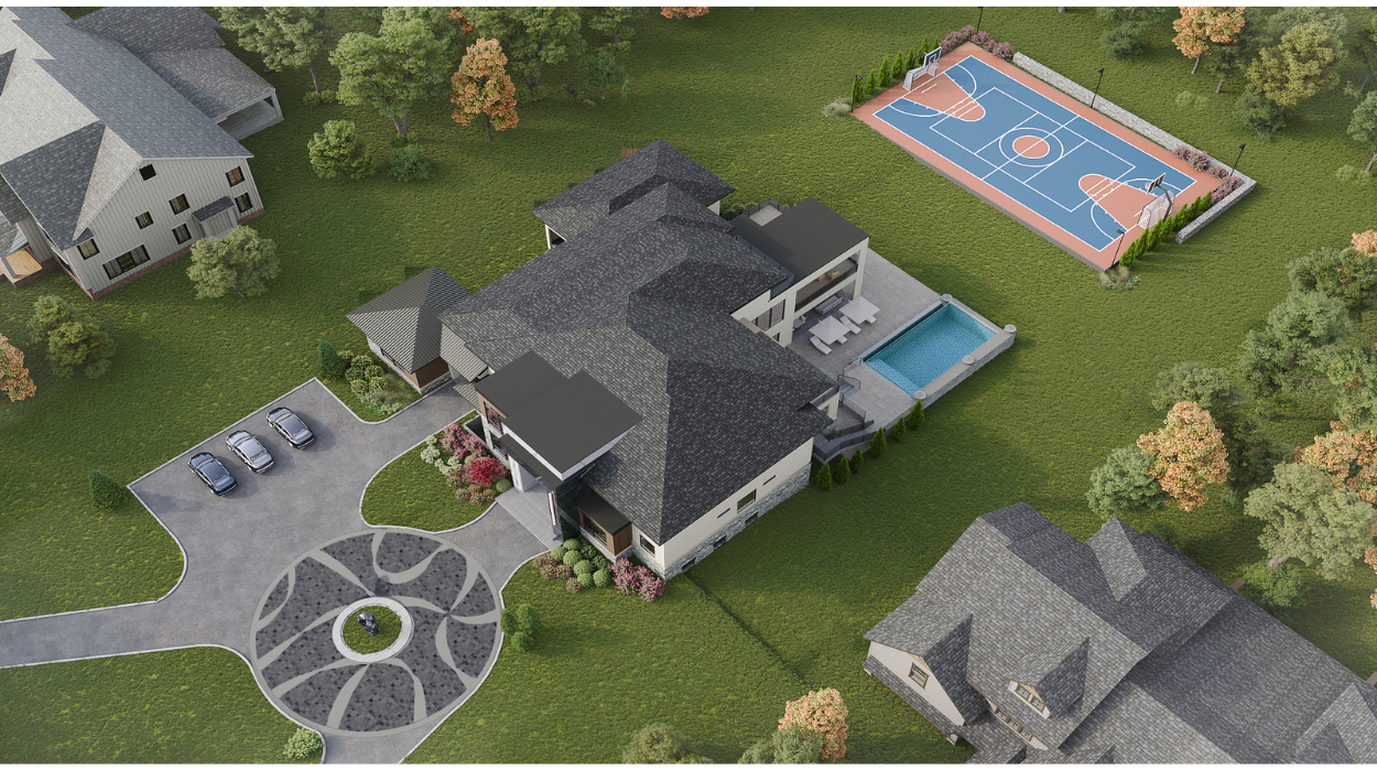 From above, spatial flow, driveway geometry, and outdoor zoning became immediately clear — eliminating guesswork before construction.
