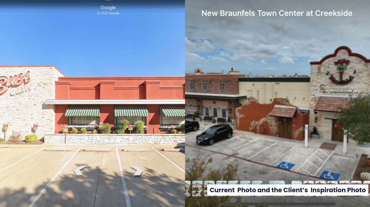 When he found us online, he finally saw a path forward. With only the restaurant’s property address, a few reference photos from a previous project, and a rough direction for the renovation, we had everything we needed to begin turning Peter’s ideas into high-quality, photorealistic 3D renderings, fast.
