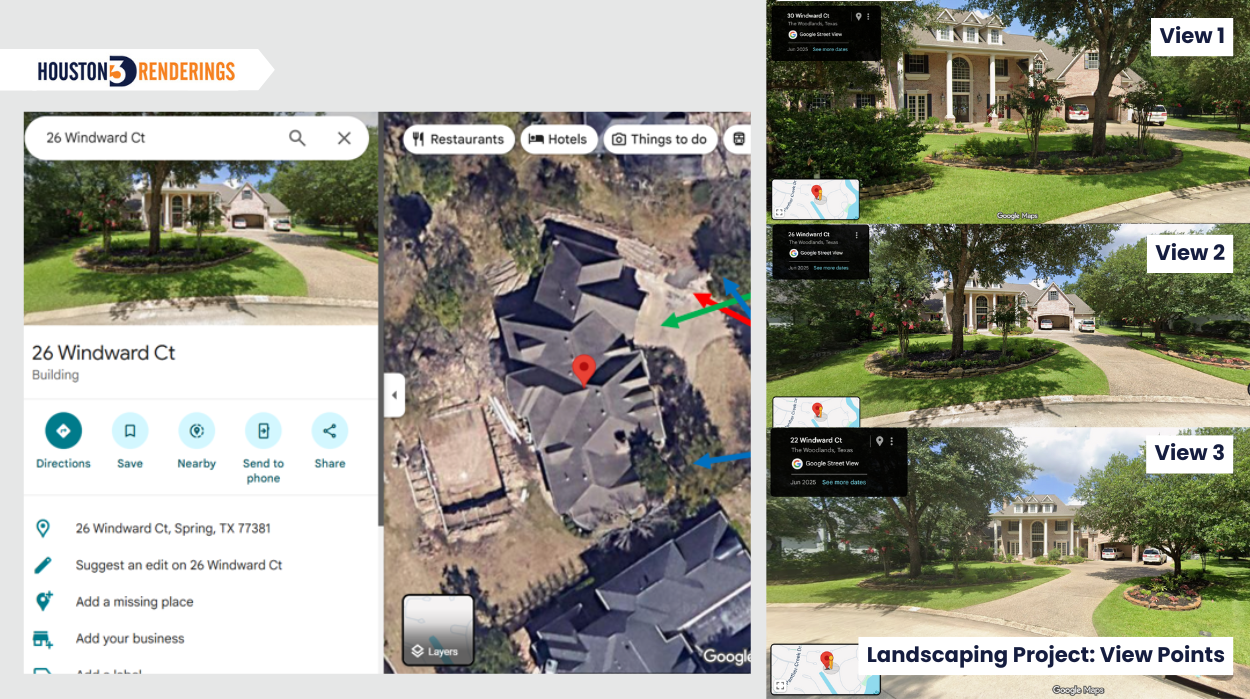 Trae, a landscaping company owner, approached the project with only a property address and a rough idea for a drive-through driveway and outdoor layout. The goal was clear: To see the proposed driveway before built along with background.